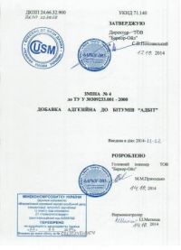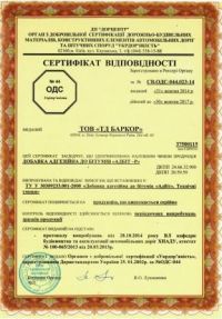 Адгезійна добавка до бітумів - Адбіт-Р має комплексний вплив на нафтові бітуми. Мінімальне додавання (0,25-0,4%) до бітуму забезпечує 100% зчіплюваність з мінеральними поверхнями, поліпшення гомогенності й уповільнення процесів старіння полімер-бітумного в'яжучого. Застосування Адбіт-Р в дорожньому будівництві дозволяє заощадити до 10% бітуму і знизити на 10-15 ºС температуру укладання асфальтобетону та продовжити дорожній сезон.